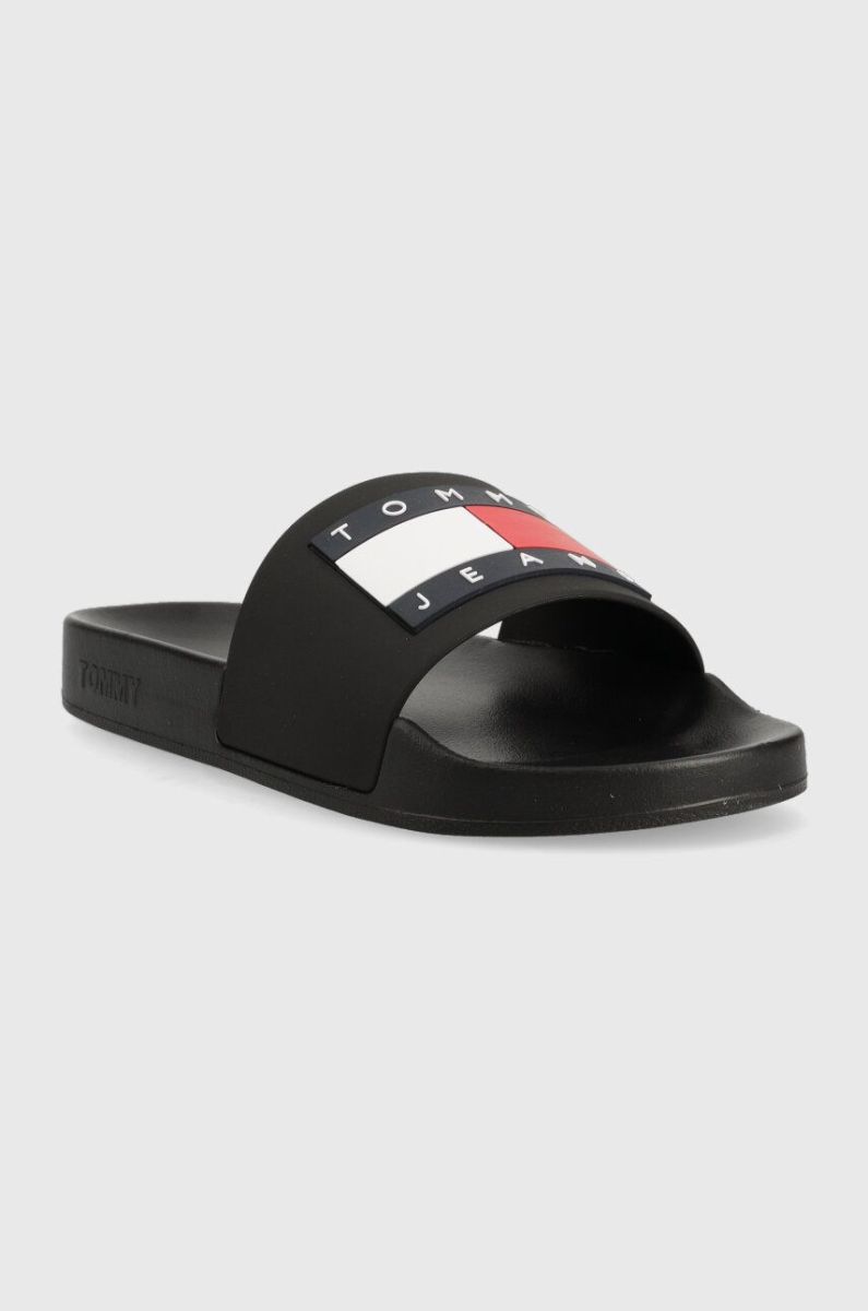 Шльопанці Tommy Jeans FLAG POOL SLD ESS жіночі колір чорний EN0EN02115